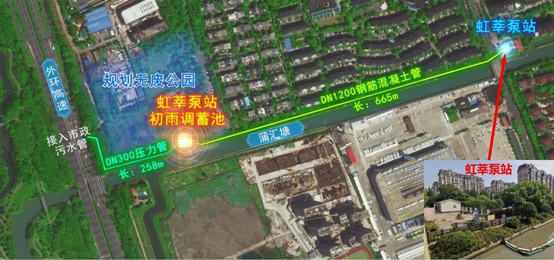 該工程位于上海市閔行區(qū)七寶鎮(zhèn)外環(huán)高速東側(cè),蒲匯塘北側(cè)。新建調(diào)蓄池服務(wù)范圍與閔行區(qū)井亭排水系統(tǒng)一致,匯水面積約130公頃,設(shè)計調(diào)蓄規(guī)模達(dá)4700立方米。項目包含一座初雨調(diào)蓄池土建和機(jī)電安裝、配套進(jìn)水管及出水壓力管,一座地下變電所及附屬工程等。