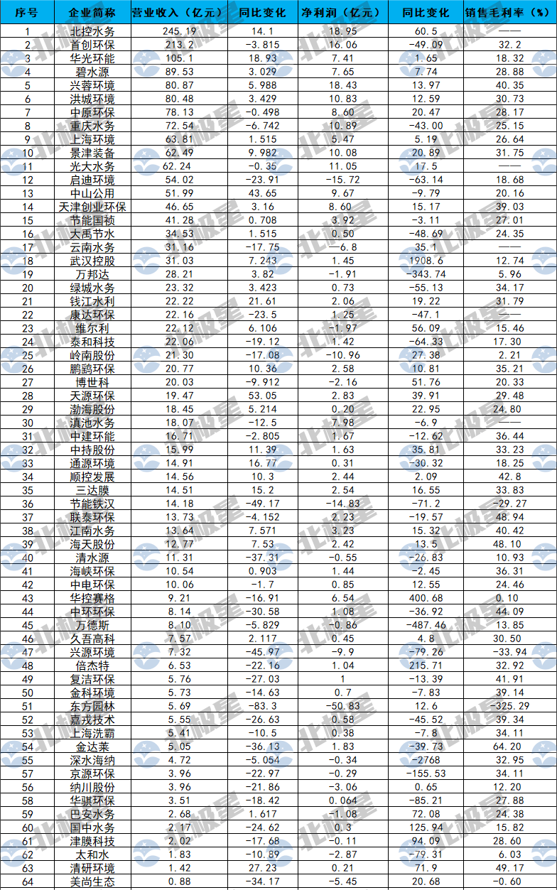 64家水務(wù)上市公司2023年業(yè)績(以營收排序)