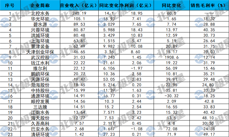 注:光大水務(wù)排名按照折合成人民幣計算本文凈利潤指歸母凈利潤