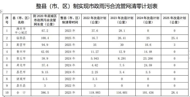 濰坊市城市排水“兩個清零、一個提標”實施方案