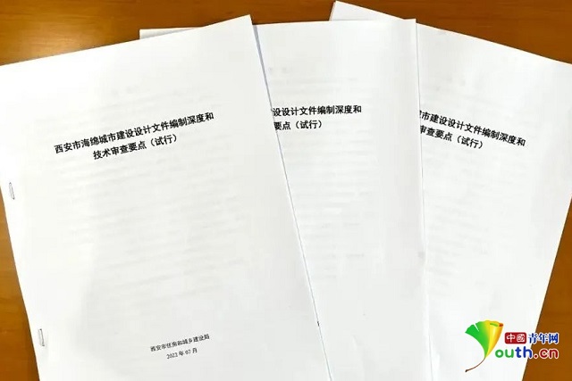 由陜西西咸海綿城市工程技術(shù)有限公司(灃西新城海綿城市技術(shù)中心)聯(lián)合中聯(lián)西北工程設(shè)計研究院有限公司等有關(guān)單位編制的《西安市海綿城市建設(shè)設(shè)計文件編制深度和技術(shù)審查要點(試行)》文件。灃西新城供圖