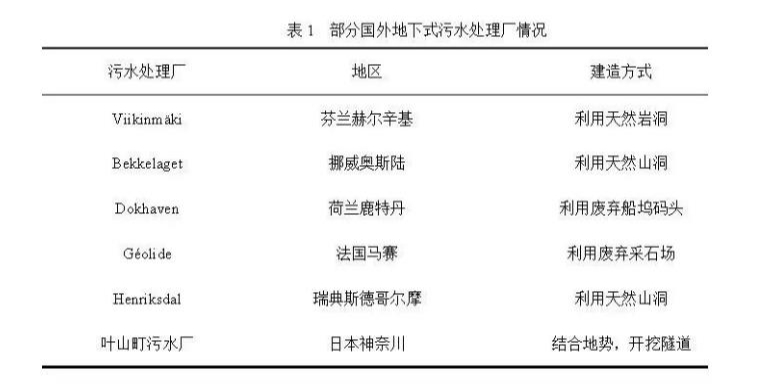 在人口密度更高,城市用地更為緊張,社會經(jīng)濟更加發(fā)達的一些歐美、日本等國家(圖5),地下式污水處理廠并非遍地開花,幾乎是鳳毛麟角。此外,國外少有的一些地下式污水處理廠案例(表1)中,其建設選址、緣由也非盲目跟風,主要是充分利用天然山洞、廢棄地下建筑等地形順勢而為,因此而大大減少了建設所需的工程量??梢?,地下污水處理廠的建設應因地制宜,不應盲目跟風。