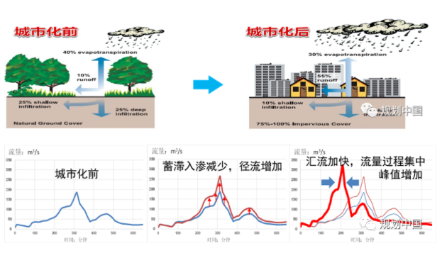 “快速的城鎮(zhèn)化急劇改變了城市的下墊面,再加上氣候變化的疊加影響,水循環(huán)過程發(fā)生了顯著變化,造成城市內(nèi)澇加劇?!?王浩說。
