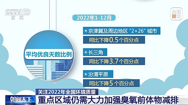 此外,生態(tài)環(huán)境部通報(bào)的2022年全國(guó)環(huán)境空氣質(zhì)量狀況還介紹了京津冀、長(zhǎng)三角和汾渭平原三大重點(diǎn)區(qū)域的大氣環(huán)境質(zhì)量狀況。專家分析,目前這三個(gè)區(qū)域PM2.5和臭氧濃度普遍仍然較高,需繼續(xù)加強(qiáng)減排工作。