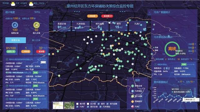一張“智慧地圖”,標(biāo)記100家污水排放企業(yè)、17處污水管網(wǎng)窨井、8座排污泵站、5處農(nóng)村污水處理設(shè)施。打開(kāi)網(wǎng)頁(yè)或手機(jī)App,就能實(shí)時(shí)監(jiān)管排水情況。日前,總投資1280萬(wàn)元的常州經(jīng)開(kāi)區(qū)排水管理信息化監(jiān)管平臺(tái)順利通過(guò)驗(yàn)收。
