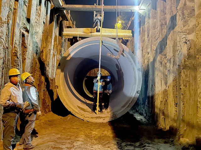 據(jù)介紹,施工地點(diǎn)涵蓋大部分燕郊城區(qū),幾乎要對(duì)整個(gè)城市的地下排水系統(tǒng)管網(wǎng)進(jìn)行更新,城建團(tuán)隊(duì)見縫插針采取明挖、頂管、拖拉管、暗挖掘進(jìn)等工藝,輔以地下降水、水平降水、真空抽水等方式,同時(shí)大量定制巨型管道,對(duì)燕郊整個(gè)排水管網(wǎng)進(jìn)行差異化升級(jí)。