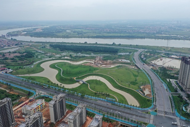 基于自然,讓河湖自主“吐納”。信江新區(qū)廠網(wǎng)河湖園一體化海綿城市建設(shè)PPP項(xiàng)目全面梳理信江新區(qū)現(xiàn)狀水系,利用現(xiàn)狀水系舊徑,減少道路路面開挖,連通片區(qū)河湖通道。目前,經(jīng)過治理的石鼓渡河、龍?zhí)逗呀?jīng)初步恢復(fù)了生態(tài)性能,待石鼓渡河、龍?zhí)逗取傲悠吆被ネê?,城市排澇能力能夠得到增?qiáng),河道水動(dòng)力條件將會(huì)明顯改善,河湖水環(huán)境品質(zhì)必有顯著提升。