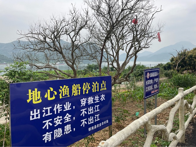 順著坡路走進村子,公告欄里貼著《環(huán)北部灣廣東水資源配置工程(郁南段)建設(shè)征收地心村委員會一村村民小組土地公示》,由郁南縣建城鎮(zhèn)人民政府蓋章,日期為2023年2月23日。公告欄對面,懸掛著一條紅色長條幅,上面的黃色大字格外顯眼:禁漁時間:2023年3月1日0時至6月30日24時。