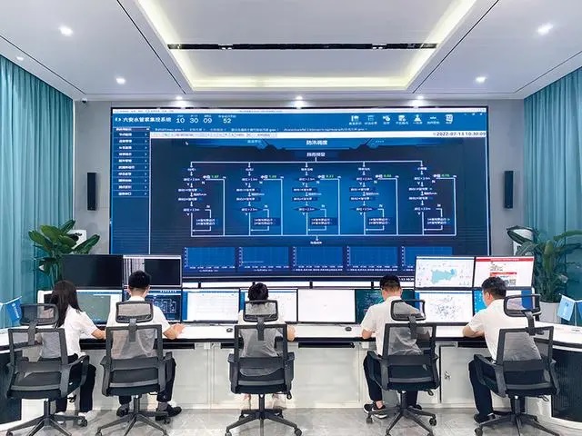 安徽六安水管家集控中心智慧調(diào)控系統(tǒng)操作現(xiàn)場(2022年7月13日攝) 三峽集團(tuán)供圖
