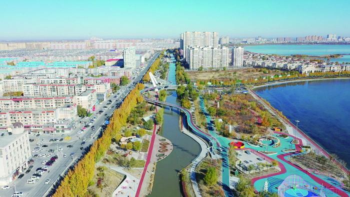 綠脈織網(wǎng),河湖共治。濱水綠道沿黎明河建設(shè),從北向南串聯(lián)起了薩爾圖區(qū)的南北城區(qū),沿途連通了薩北湖、蘭德湖、濱洲湖、黎明湖、萬寶湖、三永湖等湖泊。項目與大慶市已開展的湖泊治理工程相銜接,通過濱河、濱湖綠化緩沖帶建設(shè),減少地面徑流污染;湖泊濕地凈化后的雨水回補黎明河后,又能提升河道水質(zhì),達到河湖互補共治的效果。