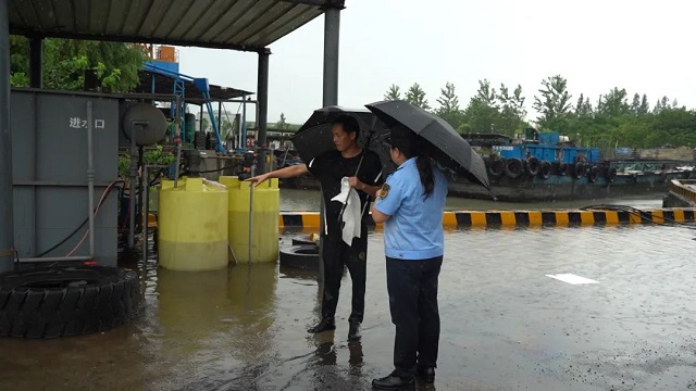 隨后,檢查工作的另一站是馬陸鎮(zhèn)某廢舊金屬回收公司。 “公司現(xiàn)場管理粗放,回收的廢舊金屬露天堆放,可能導(dǎo)致廢品中的油污隨雨水沖刷流入河道?!眻?zhí)法隊員介紹早前這家企業(yè)存在的問題。這家公司曾被發(fā)現(xiàn)過雨水違規(guī)外排現(xiàn)象。當(dāng)時也是一個大雨天氣,公司工人發(fā)現(xiàn)由于廢水處理設(shè)施進(jìn)水泵停運,導(dǎo)致周邊排水溝積水現(xiàn)象嚴(yán)重,工人就打開雨水截止閥向蕰藻浜排放積水。對此,區(qū)生態(tài)環(huán)境局執(zhí)法大隊立即責(zé)令企業(yè)整改,重新維修進(jìn)水泵,并按要求將初期雨水進(jìn)行收集處理,后期再將處理后的雨水達(dá)標(biāo)排放。
