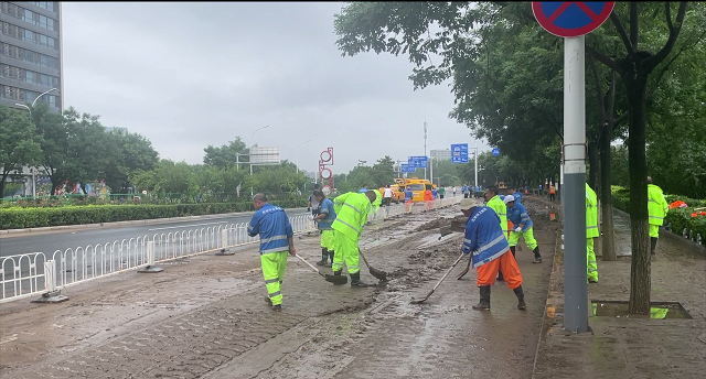 據(jù)了解,8月1日北京環(huán)衛(wèi)集團接到市委、市政府緊急任務(wù),趕赴門頭溝區(qū)一線,支援道路和環(huán)境秩序恢復(fù),共調(diào)度200余名職工、50余部大型機械車輛在門頭溝區(qū)展開作業(yè)。