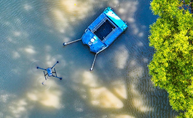 而無(wú)人船相較于傳統(tǒng)人工乘船巡河保潔的方式,可以按照提前設(shè)定的航線、時(shí)間等指令,開(kāi)展無(wú)人值守保潔。全過(guò)程自動(dòng)識(shí)別鎖定水面漂浮物和垃圾,并將其收集打撈進(jìn)入垃圾艙。目前,海曙區(qū)在一些河道保潔壓力較大的區(qū)域設(shè)置無(wú)人船船塢,可供無(wú)人船充電、垃圾轉(zhuǎn)運(yùn)。