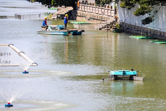 海曙區(qū)水利局相關(guān)工作人員介紹說(shuō),為長(zhǎng)效保障河道水質(zhì),海曙區(qū)還新增曝氣、水下推流等設(shè)備36臺(tái),投入水體綠植約1470余平米,營(yíng)造“水美和諧、品質(zhì)卓越”的特色水域環(huán)境。