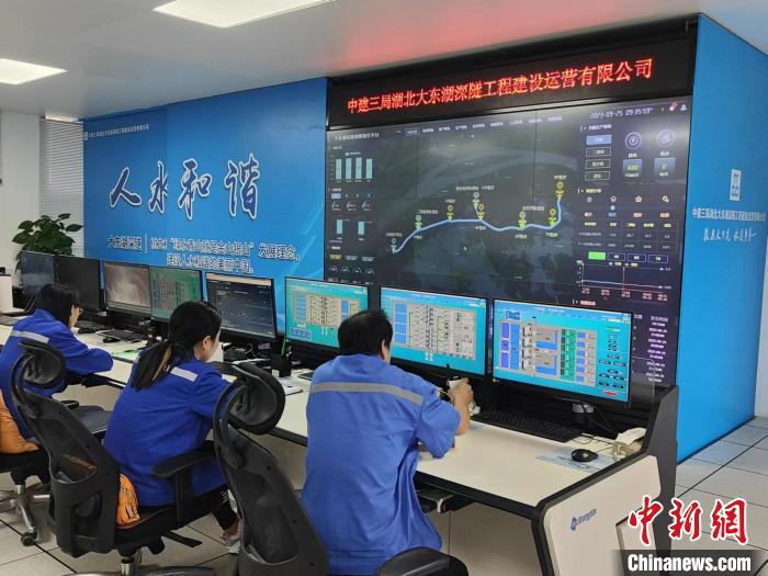 輕點(diǎn)鼠標(biāo),污水傳輸設(shè)備工況、各種檢測(cè)數(shù)據(jù)、調(diào)度計(jì)劃等數(shù)據(jù)全部顯示在電子大屏。9月25日,在武漢大東湖深隧二郎廟預(yù)處理站,3名工作人員在中控室通過(guò)信息化管理平臺(tái),掌控著每天60余萬(wàn)噸污水“乘”深隧“專(zhuān)列”快速送入至遠(yuǎn)端北湖污水處理廠(chǎng)。