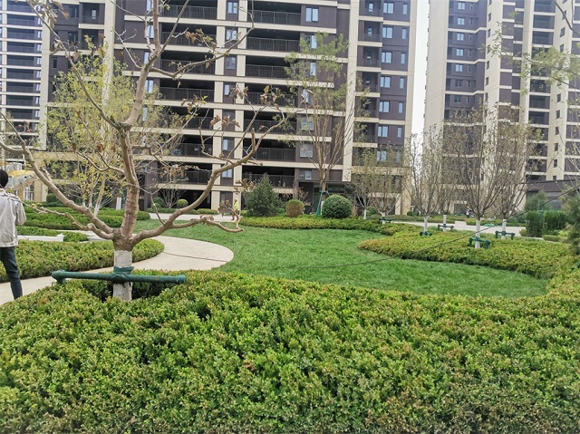 綠城集團(tuán)天津桂語(yǔ)聽瀾項(xiàng)目位于空港經(jīng)濟(jì)區(qū)環(huán)河?xùn)|路與東八道交口處,項(xiàng)目類型為住宅小區(qū),可用地面積61808.8平方米,通過(guò)設(shè)置下凹綠地、透水鋪裝等海綿設(shè)施,同樣實(shí)現(xiàn)了年徑流總量控制率≥75%的目標(biāo)。該項(xiàng)目道路均為平緣石,硬質(zhì)鋪裝豎向高于周邊綠地,雨水自然找坡匯流到下凹綠地內(nèi)。在滿足排水要求的同時(shí),該項(xiàng)目也強(qiáng)調(diào)與景觀緊密結(jié)合,喬木種植區(qū)局部下凹,景觀休憩區(qū)整體下凹,微地形起伏環(huán)繞,在有限的用地空間內(nèi)平衡功能與景觀需求,實(shí)現(xiàn)土地的高效利用,既能保護(hù)景觀植物,又能創(chuàng)造更多的層次和調(diào)蓄空間,豐富景觀效果,實(shí)現(xiàn)人與自然和諧共處。
