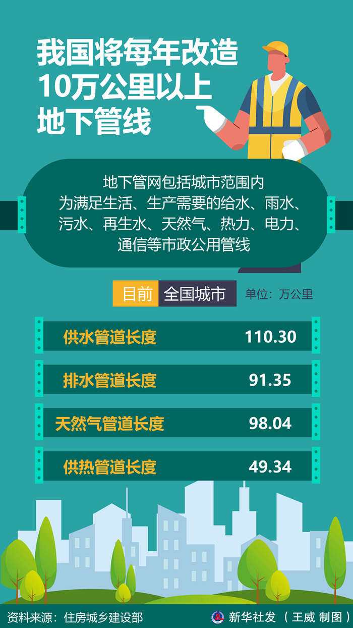 住房城鄉(xiāng)建設(shè)部相關(guān)司局負(fù)責(zé)人表示,地下管網(wǎng)包括城市范圍內(nèi)為滿(mǎn)足生活、生產(chǎn)需要的給水、雨水、污水、再生水、天然氣、熱力、電力、通信等市政公用管線。目前,全國(guó)城市的供水管道長(zhǎng)度達(dá)110.30萬(wàn)公里,排水管道長(zhǎng)度91.35萬(wàn)公里,天然氣管道長(zhǎng)度98.04萬(wàn)公里,供熱管道長(zhǎng)度49.34萬(wàn)公里。