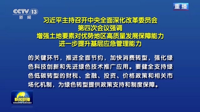 2月19日下午,中共中央總書記、國家主席、中央軍委主席、中央全面深化改革委員會主任習(xí)近平主持召開中央全面深化改革委員會第四次會議,審議通過了《關(guān)于促進(jìn)經(jīng)濟(jì)社會發(fā)展全面綠色轉(zhuǎn)型的意見》等重要文件。