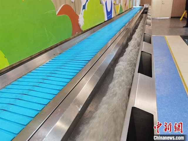 走進(jìn)浙大城市學(xué)院三食堂,學(xué)生將食物殘?jiān)谷胧占蹠r(shí),持續(xù)涌出的流水將殘?jiān)鼪_至設(shè)有過(guò)濾網(wǎng)的收集箱,過(guò)濾后的水又循環(huán)至殘?jiān)占?,繼續(xù)使用。此過(guò)程中,較臟的水被排出洗碗機(jī)系統(tǒng),而安裝于收集槽上方的自來(lái)水出口,既方便洗手,也可補(bǔ)充沖洗水,實(shí)現(xiàn)“一水多用”。