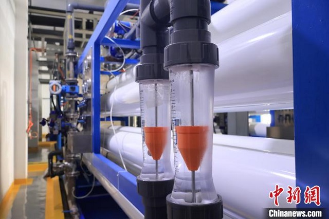 九峰垃圾焚燒廠使用垃圾滲濾液處理系統(tǒng),將垃圾滲濾液過(guò)濾至清澈狀態(tài)。 黃俊杰攝