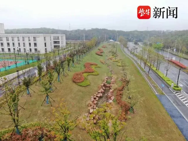法治園區(qū)配套道路及環(huán)境提升工程位于南京市江北新區(qū)沿山大道以東,浦鎮(zhèn)大街以南。在完善片區(qū)路網(wǎng)的同時,該項目因地制宜布局下凹綠地、透水鋪裝、植草溝、溢流式雨水口、滲透管等海綿設(shè)施,通過觀賞花草種植、天然石鋪地、植物組團點綴等形式打造特色旱溪景觀,實現(xiàn)生態(tài)功能與景觀效果的統(tǒng)一。