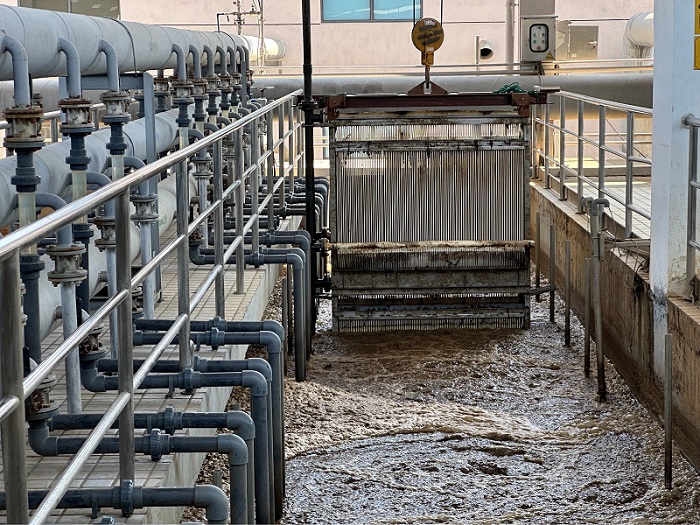“受廠區(qū)預(yù)留地面積的制約,二期占地僅是一期的一半?!睆埣腋凼腥A遠(yuǎn)環(huán)境科技有限公司副總經(jīng)理張保恩介紹,相比傳統(tǒng)污水處理工藝,納米平板陶瓷膜生物處理技術(shù)以新型功能納米陶瓷膜為核心,將其與傳統(tǒng)的“串級(jí)”污水生化處理工藝“并級(jí)”為一個(gè)單元,無(wú)需二沉池、反硝化濾池,大大簡(jiǎn)化縮短了工藝流程。