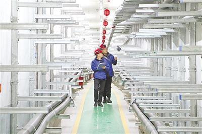 工人在十堰管廊內(nèi)巡檢。