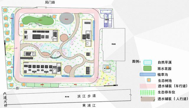 蒙自泵站擁有三個“第一”——上海第一座多功能生態(tài)排水泵站,第一座開放式的花園泵站,是全國第一座排水文化公園。上海市排水公司負責人介紹,蒙自泵站除了雨水泵、截流泵、調蓄池等排水設施外,還用雨水花園、透水道路等不同海綿構件形成海綿調蓄,完整地還原水在社會中“使用、排放、收集、處理、回歸”的循環(huán)過程。