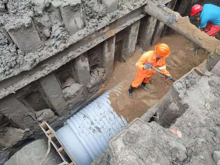 把原來(lái)這里的600~800的管子改成1000~1400管徑的管子接入后面的萬(wàn)榮路口一個(gè)窨井以后,直接接入到江場(chǎng)北的雨水泵站,使我們的下閘道這一段的積水,得到明顯的改善?;菁暗秸麄€(gè)市北高新園區(qū)、大寧地區(qū),對(duì)這兩個(gè)南北片區(qū)通行能力有一個(gè)很大的提高。