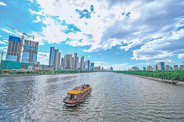 潮白河順義段游船通航項目于今年8月底正式向市民開放,環(huán)繞俸伯橋、河南村橋,打造了一條長約6公里的游船航線。游客乘坐畫舫穿梭于碧波之上,可盡賞潮白河沿岸濱水森林公園的旖旎風光和順義區(qū)的城市風貌。