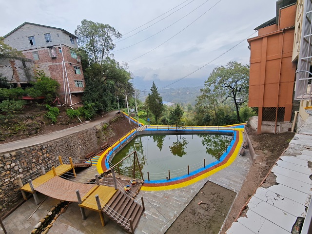 鳳來鎮(zhèn)黨委副書記、鎮(zhèn)長吳顯斌向記者介紹說,豬市壩山坪塘農村黑臭水體治理項目于2024年5月份正式啟動,對山坪塘內的生活垃圾、腐爛植物、淤泥都進行了清理,修整塘體邊坡,新建了休閑設施。同時,新建了污水收集管網(wǎng),統(tǒng)一收集利用周邊居民污水,從源頭解決污水亂排問題。后續(xù)將定期清理打撈山坪塘內的垃圾,保持水體的清亮和環(huán)境的整潔。