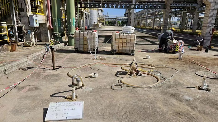 一套防腐防滲“全壽命周期管理”制度。開展綠色化改造時,為解決惠州大亞灣海邊高濕高鹽晝夜溫差大等氣候條件導(dǎo)致的涂層壽命短、防腐防滲作用失效快等問題,企業(yè)探索選用更耐用、機械性能更優(yōu)的環(huán)氧樹脂(E-44)涂料,替代原先使用的乙烯基玻璃鱗片涂料作為防腐防滲涂層。同時將涂層巡查、壽命記錄與定期維護納入日常管理,確保了企業(yè)防腐防滲涂層在其壽命周期內(nèi)持久有效,鞏固源頭“堵”的效果。