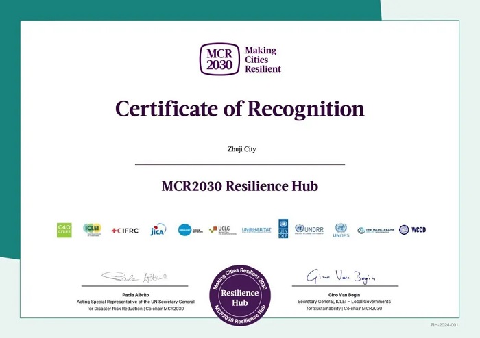 2024年,聯(lián)合國減災署公布“世界韌性示范城市”名單,浙江省諸暨市成為繼韓國仁川、菲律賓馬尼拉、韓國蔚山之后,亞太地區(qū)第4個獲此稱號的城市,也是全國首個“世界韌性示范城市”。